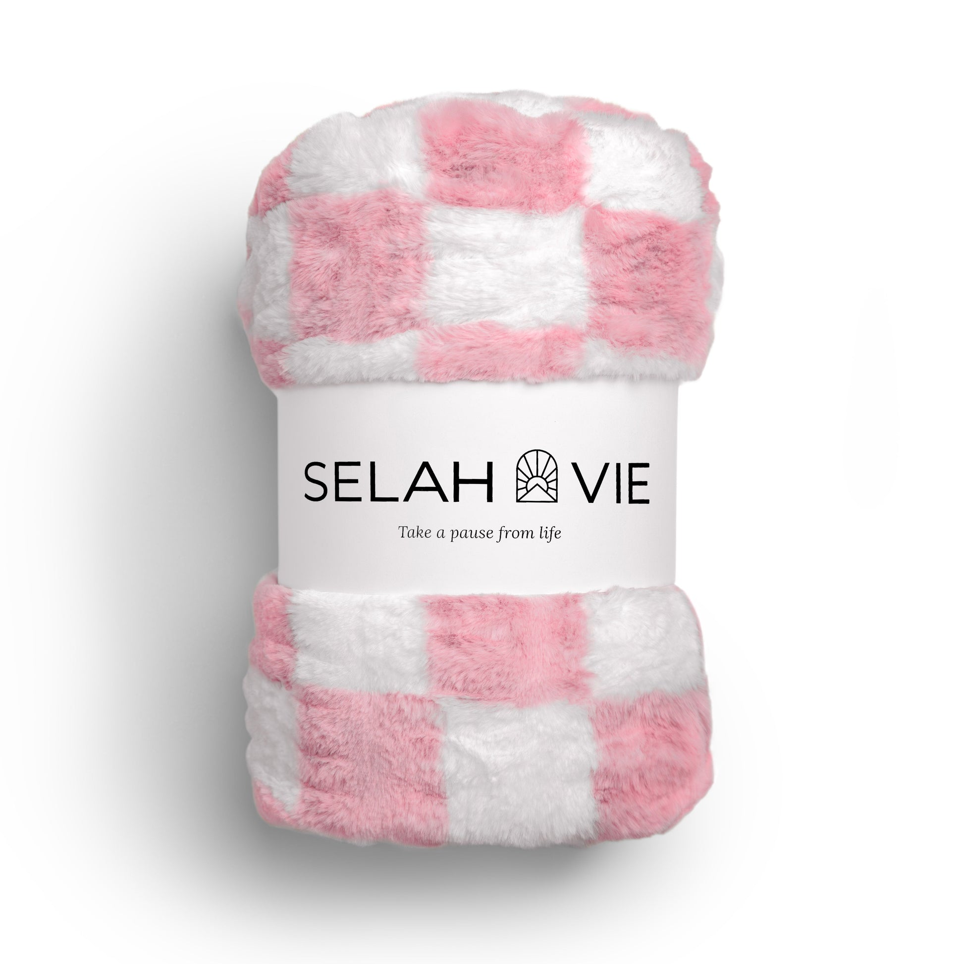 Nostalgic and heartwarming, inspired by the natural beauty of strawberries and their delicate pink color. Add a touch of timeless charm to your space with Strawberry Check, a modern twist on a classic pattern. Featuring a delicate pink and white checkered design, this blanket combines playful elegance with cozy warmth. Crafted from ultra-soft faux rabbit fur, it delivers unmatched comfort and style, making it perfect for self-care moments or adding a cheerful statement to your home. Whether draped over a sofa or wrapped around your shoulders, Strawberry Check is designed to bring joy and relaxation into every day.